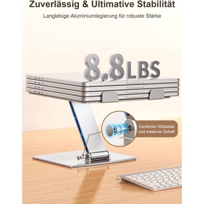 - Einzigartiges Einpolsystem: Dieses Laptop Halterung verfügt über ein innovatives Einpolsystem, das Ihrem Laptop unübertroffene Stabilität in einem schlanken, kompakten Design bietet. Die hochwertige Spindel wurde intensiven Tests unterzogen, um mehr als 3.000 Drehungen standzuhalten und damit endlose Einstellzyklen zu gewährleisten.