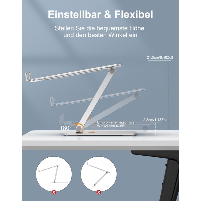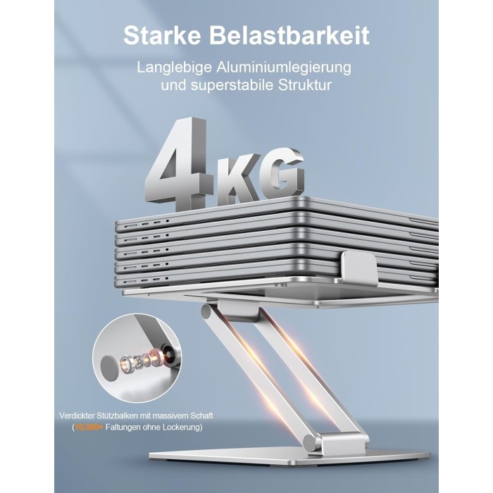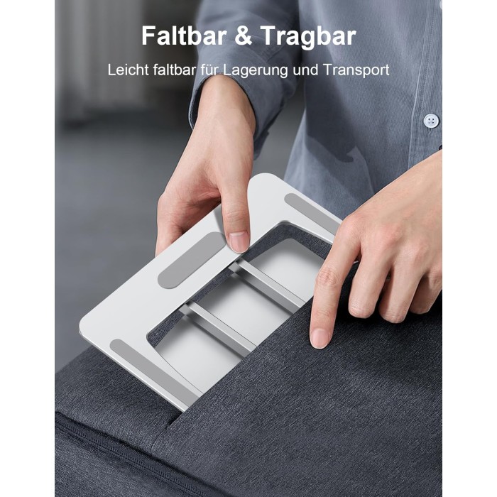 - 【Bequem & Tragbar】: Genießen Sie unvergleichliche Bequemlichkeit mit der klappbaren Funktion des Laptopständer. Die einzigartige Einpolstruktur ermöglicht ein kompaktes Profil und bietet darunter Stauraum für eine Tastatur, Maus oder andere Desktop-Gegenstände. Zusätzlich ermöglicht die hochwertige drehbare Welle über 10.000 Faltungen ohne Lockerung, was ihn leicht zu tragen und zu transportieren macht, egal ob im Büro, Konferenzräumen, Wohnzimmern, Küchen oder bei anderen Anlässen.