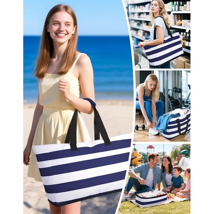 - 【Stilvolle & Vielseitige】 Diese zeitlose gestreiften Badetasche Groß sind wasser- und sandfest und Ihr ultimativer Begleiter für jede Abenteuer, sei es der Strand, das Fitnessstudio, das Schwimmbad, das Boot oder eine Kurzreise. Kombiniert mit praktischem Design und modischer Optik ist es nicht nur eine Einkaufstaschen, eine Sporttasche, oder eine Aufbewahrungstasche- es ist Mode für Frauen am Strand. Es ist perfekt für Frauen, Babies, Kinder oder Familien.