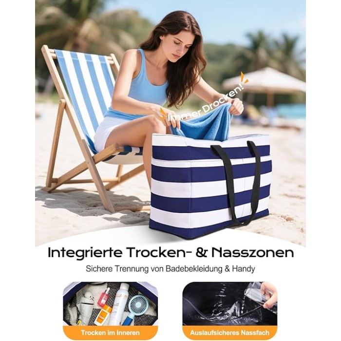 - 【Trockene & Nasse Trennung】 Tauchen Sie in die Bequemlichkeit mit dem integrierten nassen Bereich in unserem Badetasche XXL Familie ein! Speichern Sie nasse Badeanzüge und Handtücher sicher, ohne dass Ihre trockenen Essentials feucht werden. Verabschieden Sie sich von nassen Missgeschicken - dieses schlaue Design hält Ihre Ausrüstung trocken und organisiert, was Strandtage zum Kinderspiel macht!