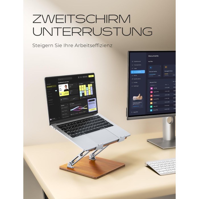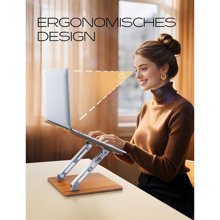 CIRYCASE Ergonomischer Laptop Ständer Höhenverstellbarer, Aluminium & Holz Laptop Stand, Faltbarer Dual-Bar Laptopständer, Notebook Ständer Stehpulte Kompatibel mit MacBook, HP 10-16"