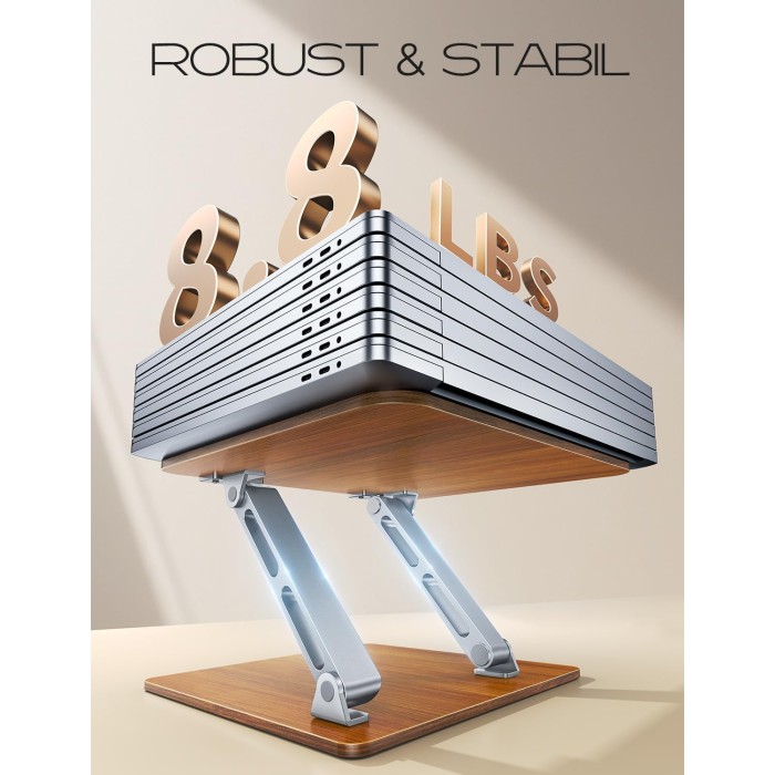 - 【Elegische Holzästhetik】Mit der königlichen, von Teakholz inspirierten Maserung auf einer verzugsresistenten Verbundholzplatte, die gegen Fingerabdrücke und Flecken resistent ist, kombiniert dieser hölzerne Laptop Erhöhung für den Schreibtisch Eleganz mit Praktikabilität. Seine matten, warmen Farbtöne verleihen jedem Arbeitsbereich eine beruhigende und moderne Ästhetik.