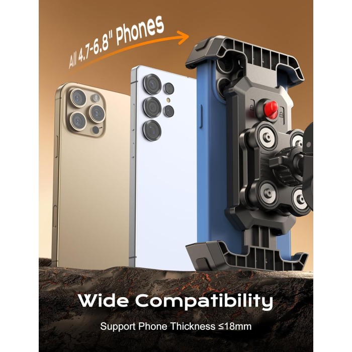 - [Breite Kompatibilität] Diese universelle Fahrrad Handyhalterung passt sicher auf alle Smartphones von 4.7 bis 6.8 Zoll und ist kompatibel mit iPhone 17 Pro/17 Air/17/16 Pro Max/16 Plus/15 Pro Max/15 Plus/15/14 Pro Max und Galaxy S25 Ultra/S24 Ultra/S24+/S24/S23 Ultra/S23. Sie bietet eine perfekte Passform für Ihr Telefon und steigert deutlich den Genuss Ihrer Fahrten.