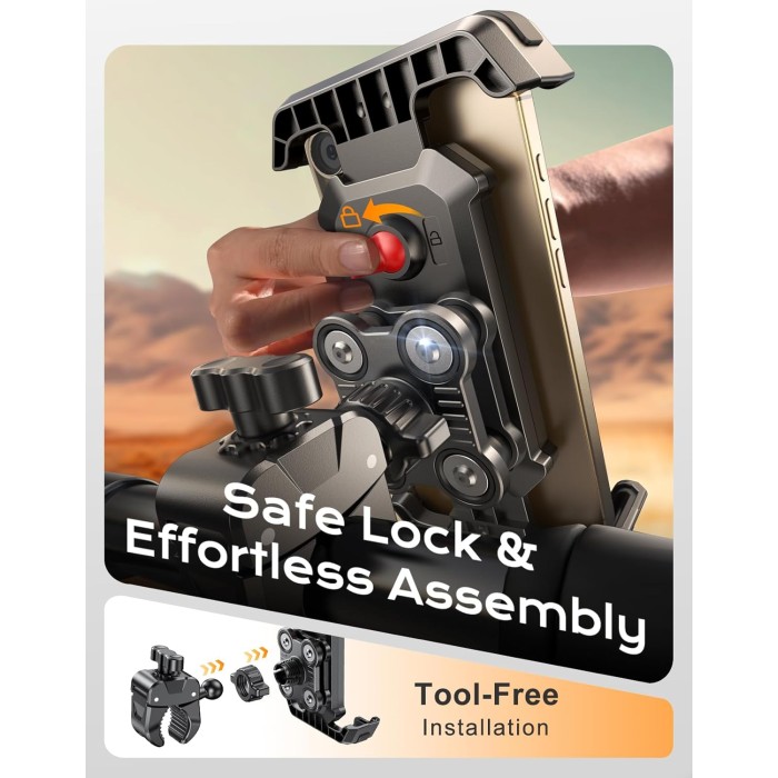 - [Einhandbedienung] Keine Tasten, kein Aufwand! Drücken Sie Ihr Handy einfach sanft in die Fahrradhalterung Handy; die Arme ziehen sich automatisch zurück und halten es sicher in Position. Unterwegs können Sie Ihr Gerät mühelos abnehmen und Fotos und Videos der atemberaubenden Aussicht aufnehmen. (Profi-Tipp: Für zusätzliche Sicherheit nach der Montage immer die Sicherheitsverriegelung aktivieren!)